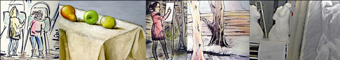 vaihtehtoisten pakollisten kurssien piiriin. Harjoitustyöt koostuvat, hiili-, pastelli-, lyijykynä-, värikynä-, guassi- l. peiteväritöistä ja akvarelleista ja akryylimaalauksesta.